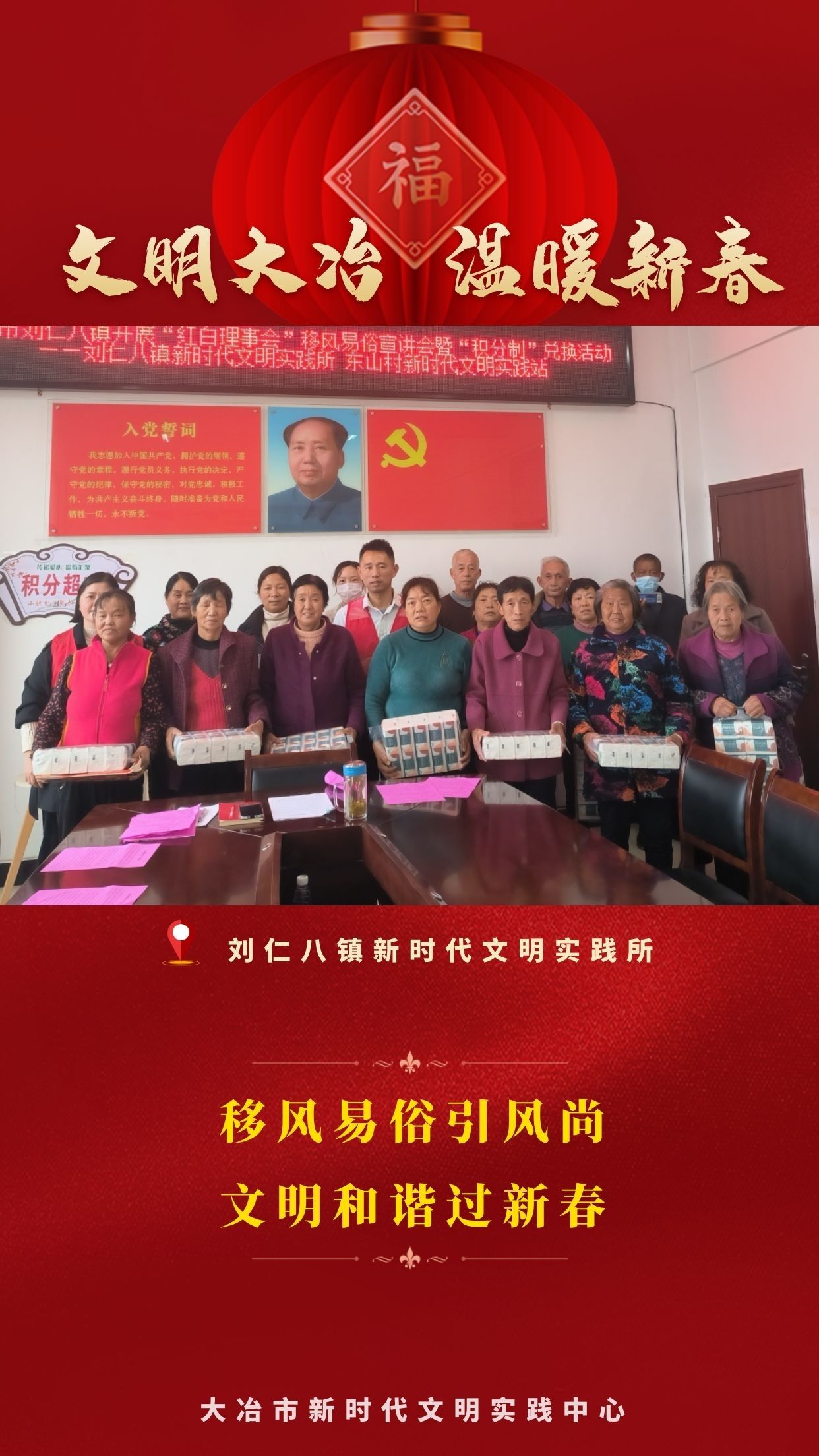 連日來(lái),大冶市新時(shí)代文明實(shí)踐中心(所、站)以精彩紛呈的志愿服務(wù)為載體,組織開(kāi)展豐富多彩的文明實(shí)踐主題活動(dòng),為廣大群眾送去滿(mǎn)滿(mǎn)的關(guān)懷,同時(shí)把宣傳黨的二十大精神和培育踐行主流價(jià)值、持續(xù)深入移風(fēng)易俗等內(nèi)容貫穿始終。