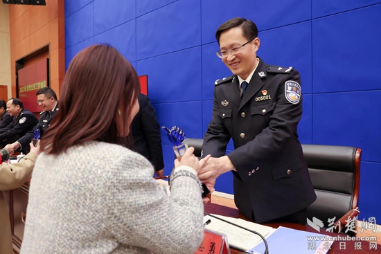 為獲獎民警頒獎。秦浩 攝
