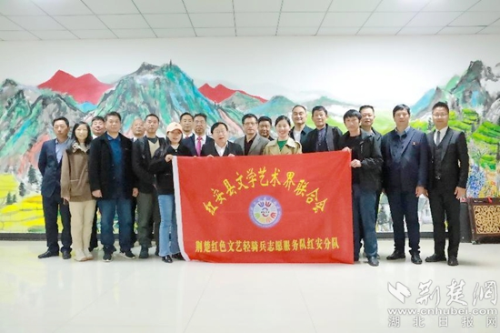 鄉(xiāng)村振興的這一示范點(diǎn)——普安橋村也吸引了文藝工作者的注意。紅安縣作協(xié)、攝協(xié)、書(shū)協(xié)、曲藝家協(xié)會(huì)一行30多人來(lái)到普安橋送《紅安文學(xué)》、送書(shū)法、為村民拍全家福、為群眾送文化大餐,前來(lái)的村民都拍手稱贊。