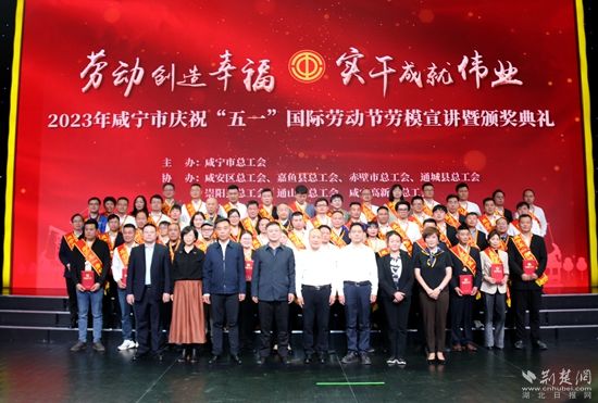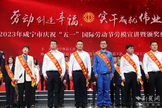 李志強(qiáng)(左三)榮獲咸寧五一勞動獎?wù)?。黃錚 攝