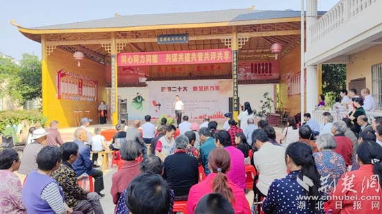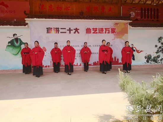 荊楚網(wǎng)(湖北日報網(wǎng))訊(通訊員毛紅平)“走啊,去文化禮堂看戲喲!紅安縣曲藝家協(xié)會主席鄧永松,自編自唱湖北大鼓宣講黨的二十大精神真好看喲?!?月14日一大早,紅安縣高橋鎮(zhèn)高樓村黨支部書記吳勝祥就在朋友圈里向村民發(fā)出了通知。