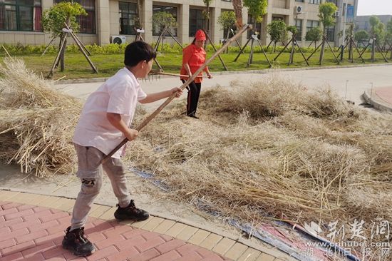 經(jīng)過(guò)幾天的曝曬,油菜殼已經(jīng)非常干脆,菜莢里的菜籽“呼之欲出”。5月16日,永河小學(xué)組織部分學(xué)生開(kāi)展“大豆脫?!眲趧?dòng)實(shí)踐活動(dòng)。