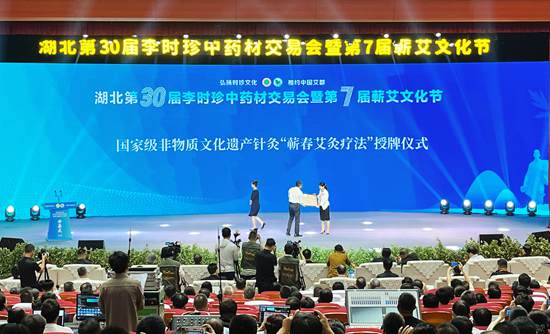 授予國(guó)家級(jí)非物質(zhì)文化遺產(chǎn)針灸“蘄春艾灸療法”牌匾。阮瓊 攝