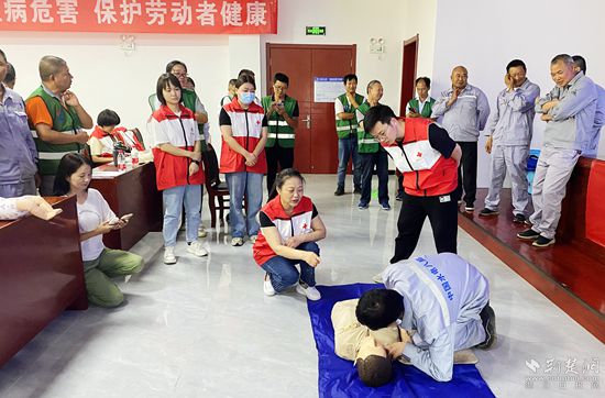 在該公司工程項目部初級救護培訓(xùn)講座上,縣紅十字會副會長李秀麗帶領(lǐng)該會工作人員和縣人民醫(yī)院志愿者忙前忙后,對60名員工進行集中指導(dǎo)授課培訓(xùn),現(xiàn)場開展操作練習(xí),科學(xué)普及應(yīng)急救護知識、增強職工應(yīng)急防護意識,提高大家應(yīng)對突發(fā)事件自救互救能力。