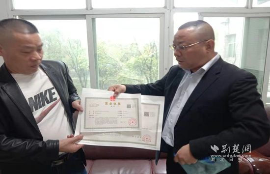 營(yíng)業(yè)執(zhí)照送到老板手上。 通訊員 黃玉 供圖