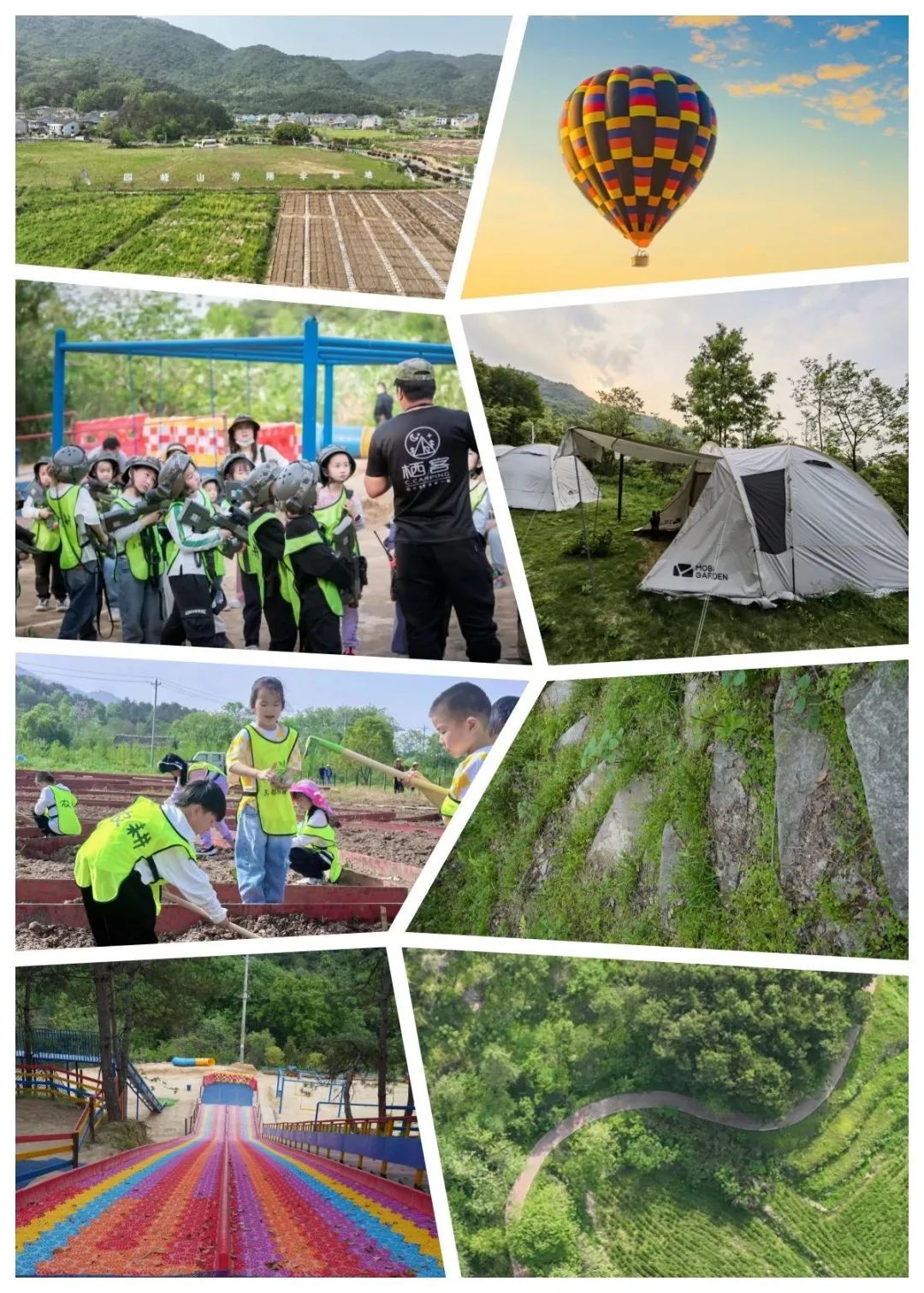 滑翔傘基地、熱氣球基地、國防教育基地露營基地、共享菜園、陶家海登山步道兒童素質(zhì)拓展樂園、環(huán)稻田七彩賽道八大產(chǎn)業(yè)