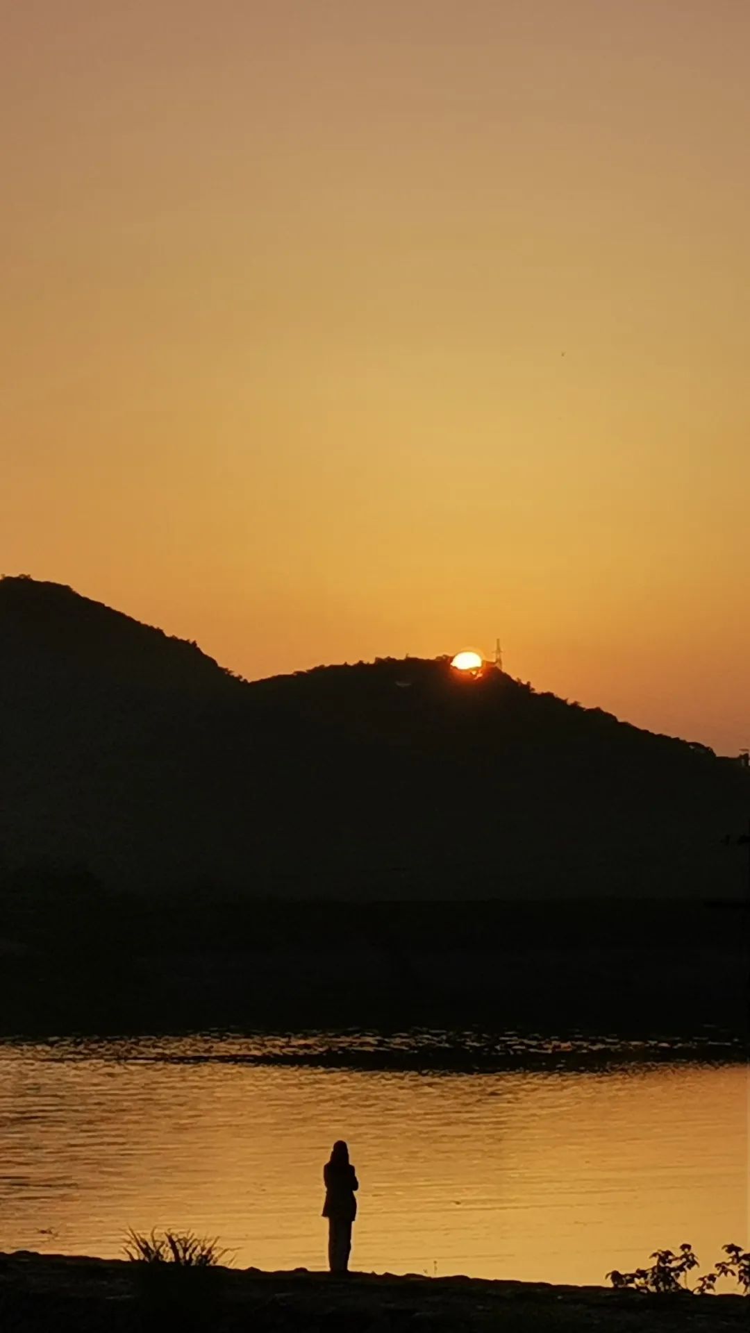 水面倒映著落日余暉