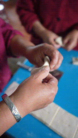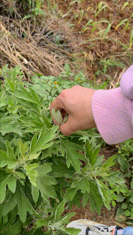 采艾草最鮮嫩的葉尖兒煮沸后過(guò)濾出青色汁液