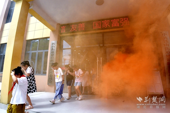 伴隨著陣陣報(bào)警聲,消防演練開始。孩子們?cè)谙绬T的帶領(lǐng)下,用手捂住口鼻、半彎腰,穿過(guò)“濃煙”,有序撤離,安全到達(dá)指定地點(diǎn),體驗(yàn)了發(fā)生火災(zāi)時(shí)的逃生技巧。隨后,