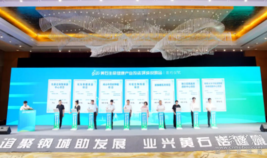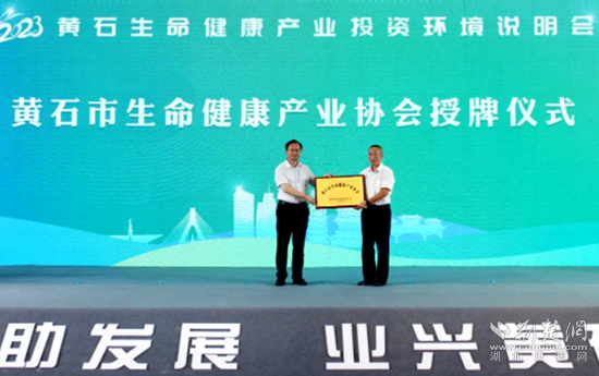 現(xiàn)場共簽約項(xiàng)目23個,總投資139.1億元,并為黃石生命健康產(chǎn)業(yè)協(xié)會授牌。