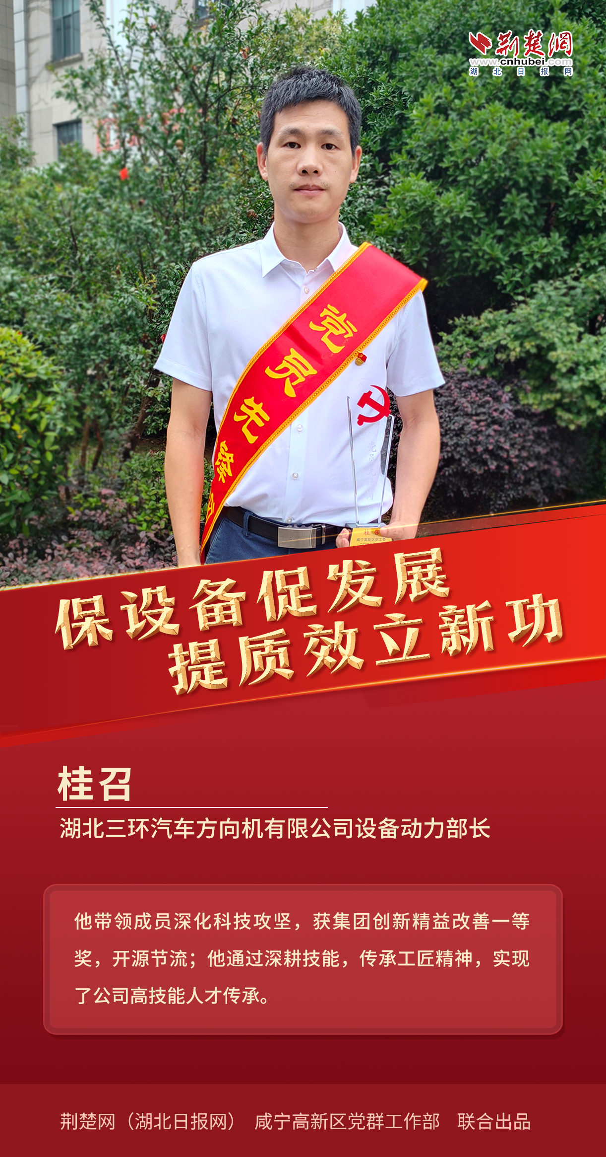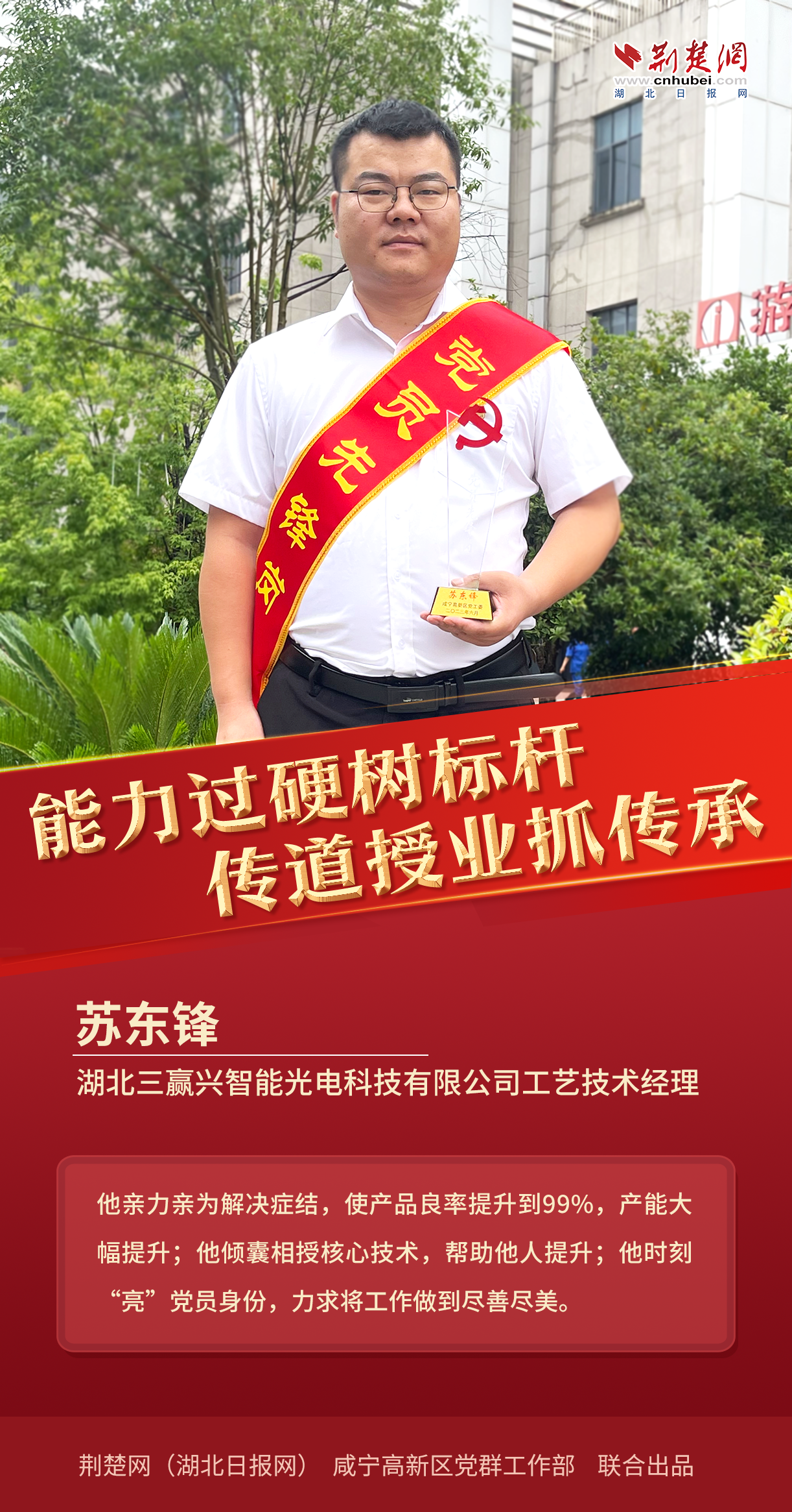 7月13日,記者從咸寧高新區(qū)獲悉,為激勵全區(qū)各級黨組織和廣大黨員學習典型、爭當先進,奮發(fā)有為、建功立業(yè),高新區(qū)黨工委研究決定,授予桂召等10名同志“黨員先鋒崗”榮譽稱號,并要求全區(qū)上下以一往無前的昂揚姿態(tài),在打造武漢都市圈自然生態(tài)公園城市,推動高新區(qū)高質量發(fā)展中展現新作為、作出新貢獻。