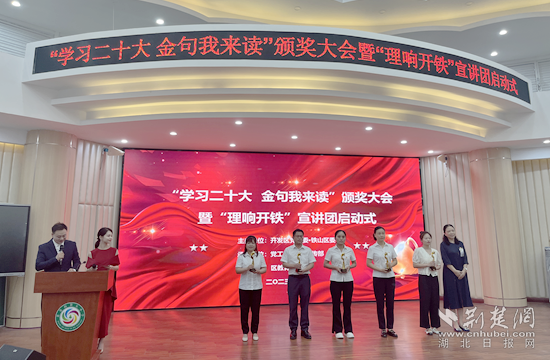 荊楚網(wǎng)(湖北日報網(wǎng))訊(記者 呂鑒蕾 通訊員 張燦華 胡娜)7月13日上午,黃石開發(fā)區(qū)·鐵山區(qū)“學(xué)習(xí)二十大 金句我來讀”頒獎大會暨“理響開鐵”宣講團(tuán)啟動式在黃金山第五小學(xué)舉行。