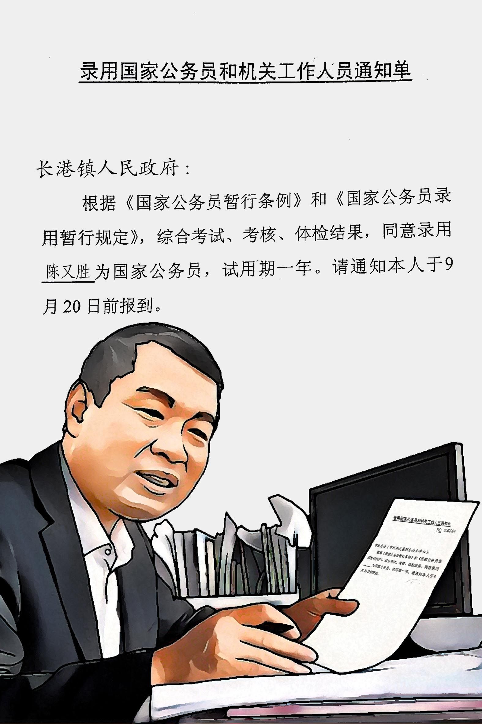 2012年,39歲的陳又勝考取了長港鎮(zhèn)機關(guān)公務(wù)員。根據(jù)當時的政策,陳又勝可以到長港鎮(zhèn)上班??稍偃紤]后,陳又勝決定還是繼續(xù)留在峒山村,帶領(lǐng)鄉(xiāng)親們致富奔小康。