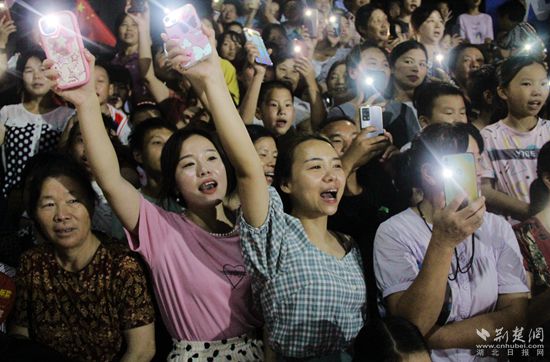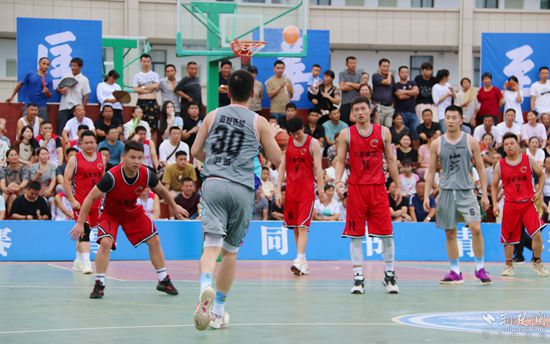 傍晚,華燈初上,匡河小學(xué)籃球場(chǎng)熱鬧非凡,球場(chǎng)周圍群眾揮舞著國(guó)旗,喜笑顏開(kāi),加油聲、喝彩聲一浪高過(guò)一浪。