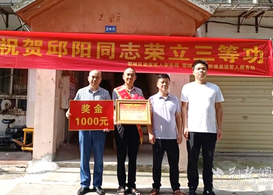荊楚網(湖北日報網)訊(通訊員丁元中)7月26日上午,鄂城區(qū)退役軍人事務局副局長陳海鵬一行到鳳凰街道濱湖社區(qū)為榮立三等功的現役軍人邱陽家人送去立功喜報和慰問金,為他們送上黨和政府的親切關懷。
