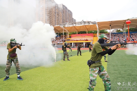 作為新生代表,高一(6)班學(xué)生周陽(yáng)介紹,七天特訓(xùn)活動(dòng)中,在教官、老師的關(guān)懷與幫助下,大家學(xué)會(huì)了停止間和行進(jìn)間的隊(duì)列動(dòng)作,學(xué)會(huì)了唱戰(zhàn)歌、打拳擊,也體驗(yàn)了持槍?xiě)?zhàn)士沉甸甸的使命和國(guó)旗手以身護(hù)旗的擔(dān)當(dāng)。