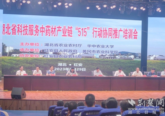 今年?6月28日,湖北省科技服務中藥材產(chǎn)業(yè)鏈“515”行動協(xié)同推廣培訓會在紅安縣潤康農(nóng)業(yè)發(fā)展有限公司召開。