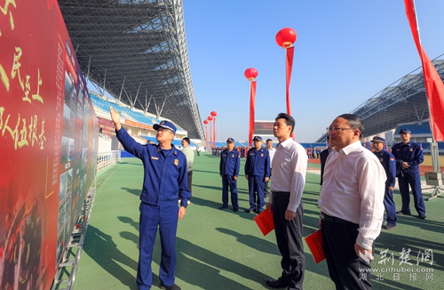 在啟動儀式現(xiàn)場,同步舉辦改革轉(zhuǎn)隸五周年紀(jì)念成果展,該展覽通過系列展板和攝影作品,反映黃岡市消防救援隊伍五年來黨建隊建和消防救援事業(yè)邁向高質(zhì)量發(fā)展的嶄新氣象。