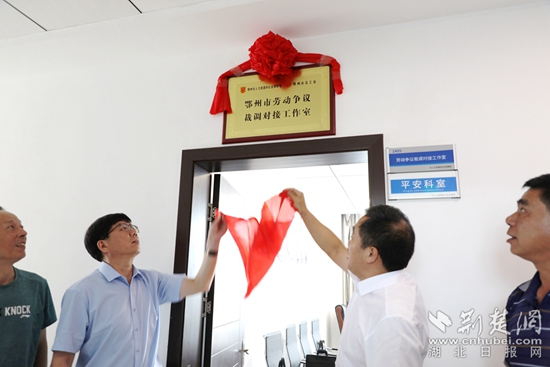 “人社+工會(huì)“勞動(dòng)爭(zhēng)議裁調(diào)對(duì)接工作室揭牌。通訊員 供圖