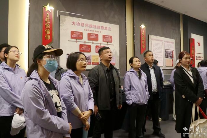 在殷祖南山頭革命紀念館廣場,大家重溫入黨誓詞;在南山頭革命紀念碑前,大家默哀鞠躬、敬獻花籃,緬懷革命先烈;在鄂東南紅色紀念館,大家認真聆聽紅色故事、看先烈艱苦卓絕的足跡,緬懷他們的豐功偉績;在江南農耕文化展覽館感嘆幸福生活來之不易;在沼山村感受美好環(huán)境與幸福生活的共同締造。