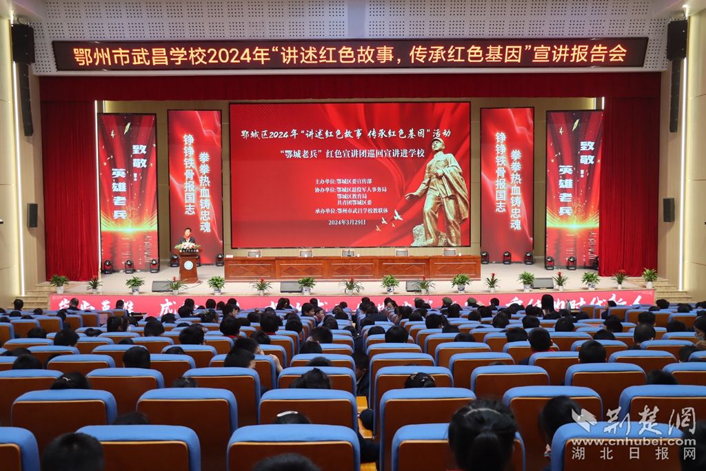 荊楚網(wǎng)(湖北日報(bào)網(wǎng))訊(記者 阮瓊 通訊員 黃丹)3月29日,鄂州市武昌學(xué)校新落成的學(xué)術(shù)報(bào)告廳里歌聲嘹亮。當(dāng)天,“鄂城老兵”紅色宣講團(tuán)成員走進(jìn)該校,開展“講述紅色故事 傳承紅色基因”主題宣講。