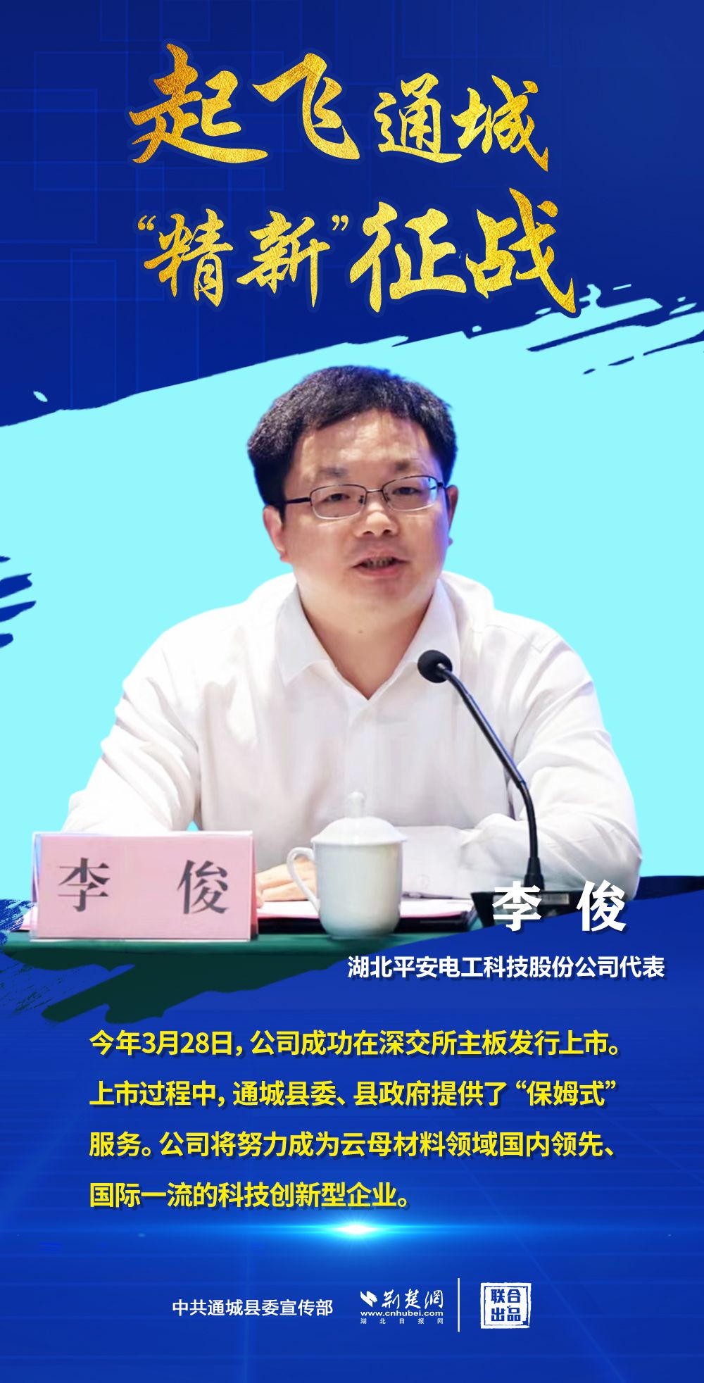 荊楚網(wǎng)(湖北日報網(wǎng))訊(記者 田城 通訊員 毛新民 付婧燁)4月18日,咸寧通城縣委常委、副縣長王功輝在該縣“專精特新”新聞發(fā)布會上表示,近年來該縣在電子信息、新材料、大健康三大優(yōu)勢產(chǎn)業(yè)發(fā)力,專精特新產(chǎn)業(yè)領(lǐng)域進(jìn)展迅猛。