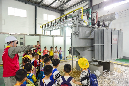 電力工作人員帶領(lǐng)小朋友們實地參觀展區(qū),學(xué)習(xí)電力知識。通訊員 供圖