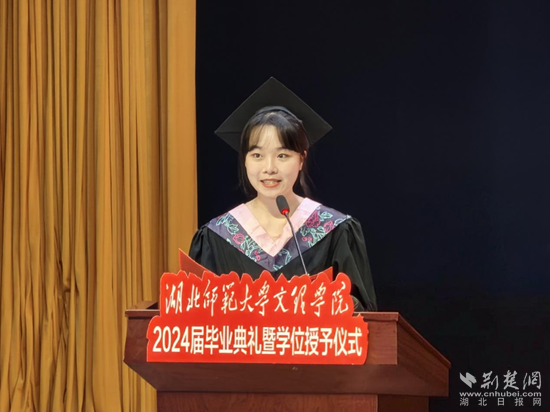 根據(jù)安排,現(xiàn)場(chǎng)分別宣讀了《關(guān)于授予2024屆畢業(yè)生學(xué)士學(xué)位的決定》和《關(guān)于表彰2024屆優(yōu)秀畢業(yè)生的決定》。隨后,優(yōu)秀畢業(yè)生代表劉佳欣、優(yōu)秀在校生代表聶菁蕓、優(yōu)秀校友代表李震威、教師代表肖燕琴分別發(fā)言。
