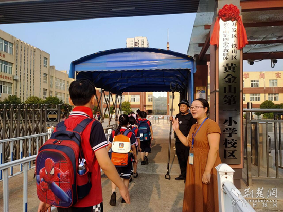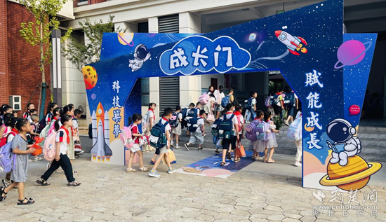 在黃金山第四小學教聯(lián)體本部校區(qū),孩子們正歡快地路過成長門。他們臉上洋溢著對未來的憧憬,小小的身影充滿著希望。