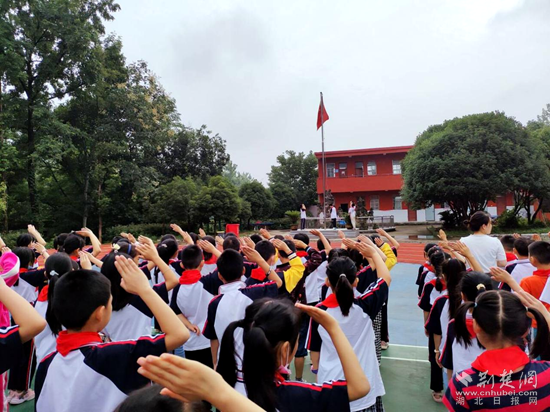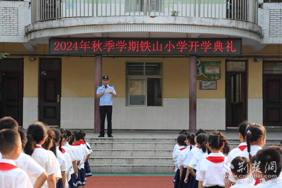 湖山小學教聯(lián)體章畈小學校區(qū),師生們齊聚學校報告廳,舉行“征途開新啟,禮“律”滿校園”為主題的開學典禮。