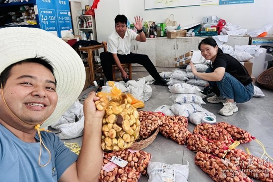 羅田縣網絡直播協(xié)會每天收購、銷售板栗,在各鄉(xiāng)鎮(zhèn)板栗公園定期組織現(xiàn)場直播打板栗、剝板栗,助力板栗走向廣闊市場,目前通過直播銷售板栗150噸,銷售額300萬元,帶動全縣農民增收致富。