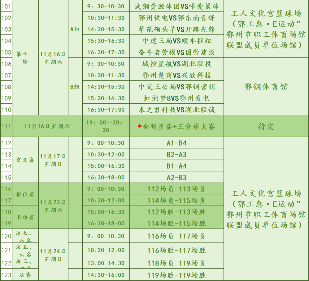 目前,此次比賽賽程已出爐,123場(chǎng)比賽將全程對(duì)外公開(kāi),感興趣的市民朋友可前往觀戰(zhàn)。