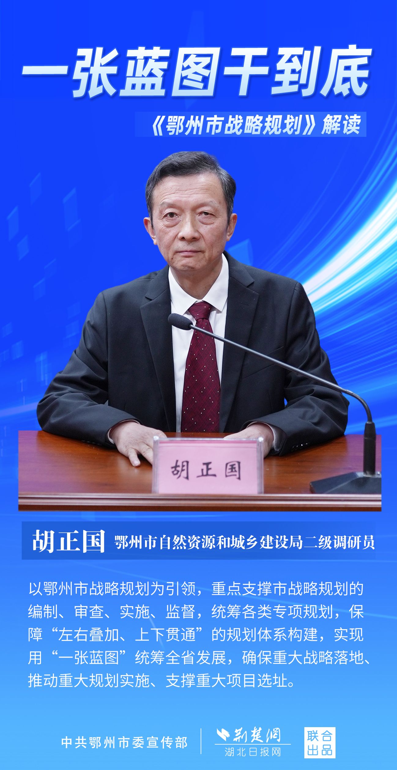 荊楚網(wǎng)(湖北日報網(wǎng))訊(記者 劉璐、金康 通訊員 胡彥)11月7日上午,鄂州市召開新聞發(fā)布會,宣布《鄂州市戰(zhàn)略規(guī)劃》即將印發(fā)實施。市委副秘書長、市委政研室主任游惠民透露,從機制優(yōu)化、指標考核、項目實施等方面確保規(guī)劃制度有依據(jù)、成效可考核、實施有抓手。具體如何落實落地?讓我們用一組海報解讀《鄂州市戰(zhàn)略規(guī)劃》。