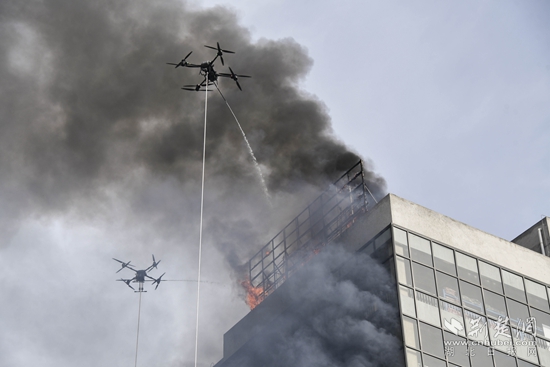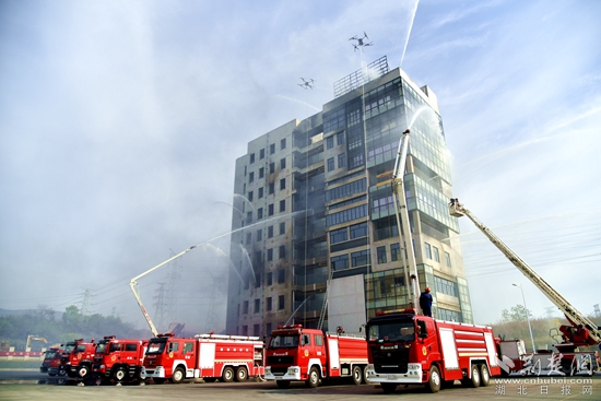 在滅火救援過(guò)程中,黃石消防首次設(shè)置無(wú)人機(jī)滅火科目,配合云梯車人員疏散、火場(chǎng)緊急避險(xiǎn)、高層供水、內(nèi)部攻堅(jiān)等實(shí)戰(zhàn)化內(nèi)容,向參會(huì)人員展示了黃石市消防救援隊(duì)伍建設(shè)成效。