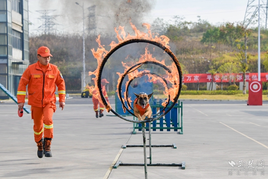 樓層綜合滅火演練前,現(xiàn)場(chǎng)先后開展了搜救犬綜合搜救操、繩索救援上升與下降操、綜合滅火救人操等科目。尤其是搜救犬互動(dòng)表演,讓人驚嘆不已?!坝行覅⒓舆@次活動(dòng),還能‘?dāng)]’到搜救犬,近距離觀看到它們?nèi)绾斡?xùn)練、搜救,我很激動(dòng)。”湖北師范大學(xué)文理學(xué)院消防志愿者王晨睿說(shuō)。
