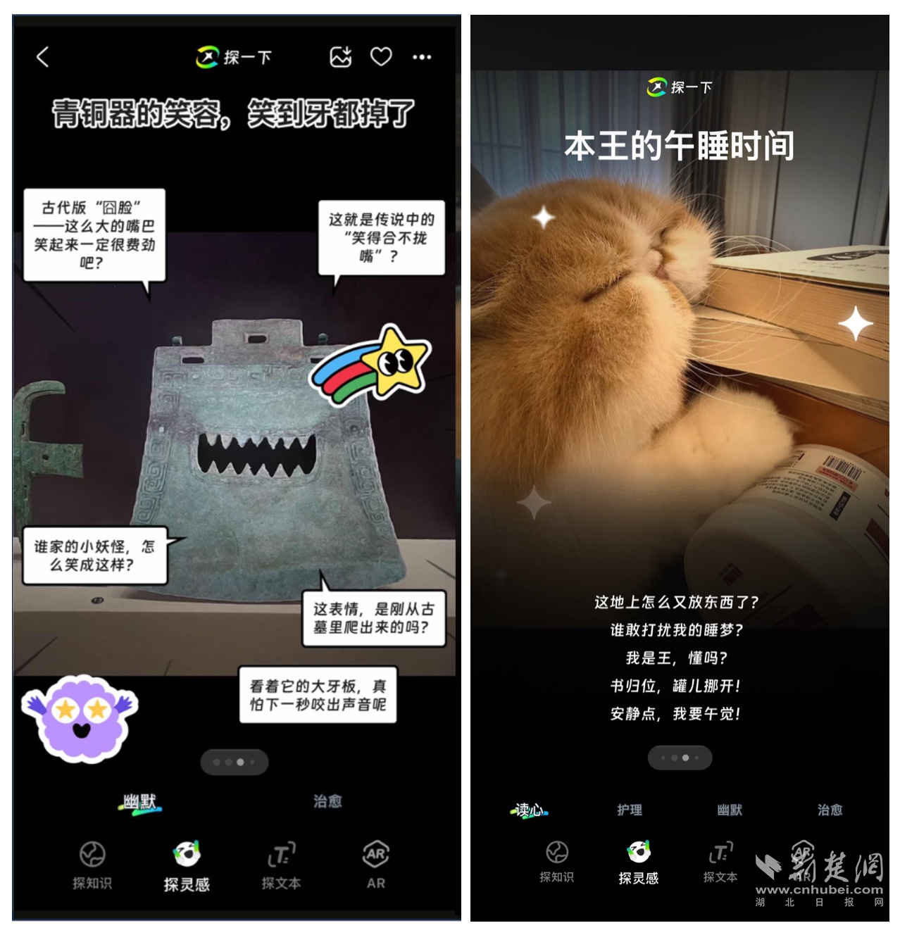不同于傳統(tǒng)的AI視覺搜索產(chǎn)品,“探一下”可通過AI識圖更快速地輸出有用信息,還能基于對用戶興趣和場景的深度理解,提供更趣味的視覺解讀及更多元的智能服務(wù)。