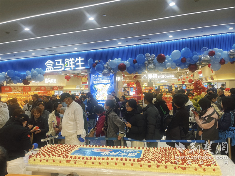 12月31日,盒馬位于硚口的新店開(kāi)業(yè),現(xiàn)場(chǎng)十分火爆。通訊員供圖