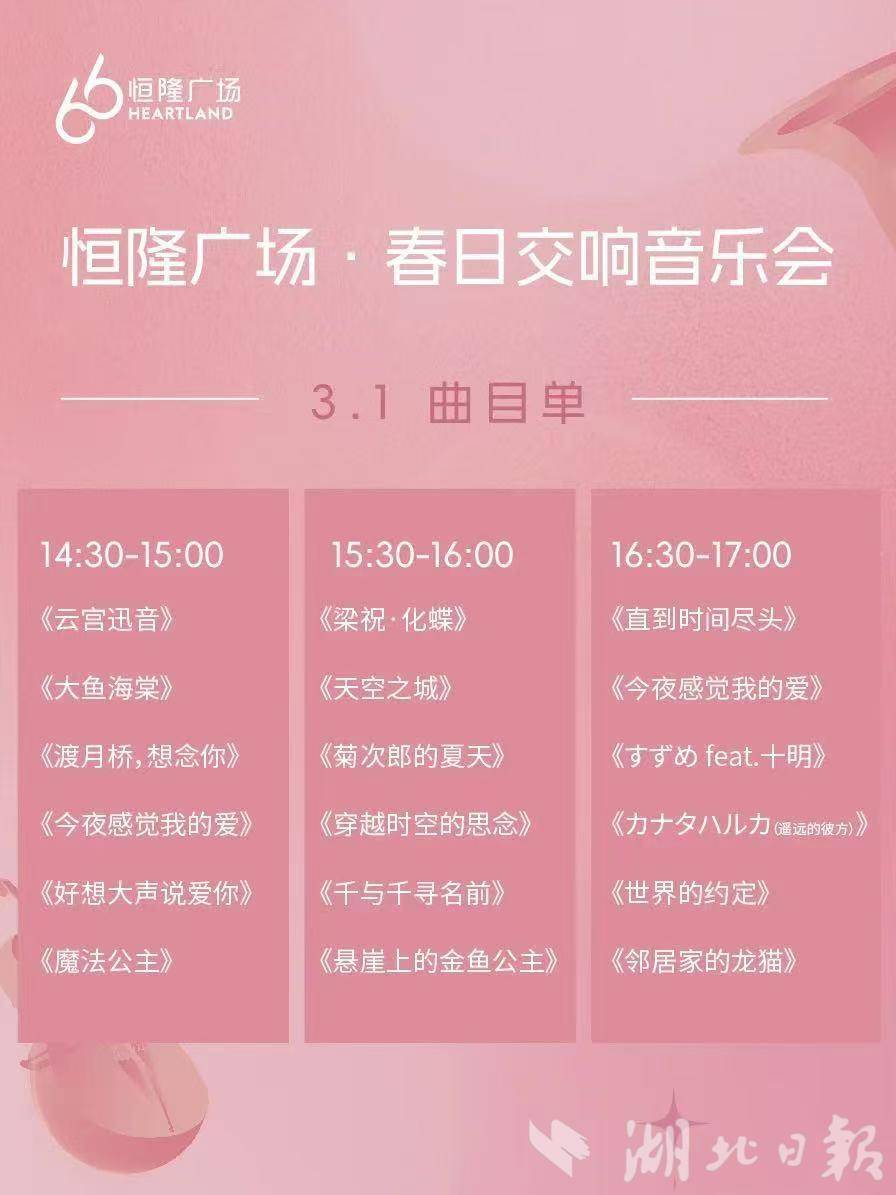 3月1日-2日,春日動漫金曲音樂會即將在武漢恒隆廣場舉行。本次音樂會由聆聽室內(nèi)樂團(tuán)帶來,邀請武漢市民共賞“春日序曲”。