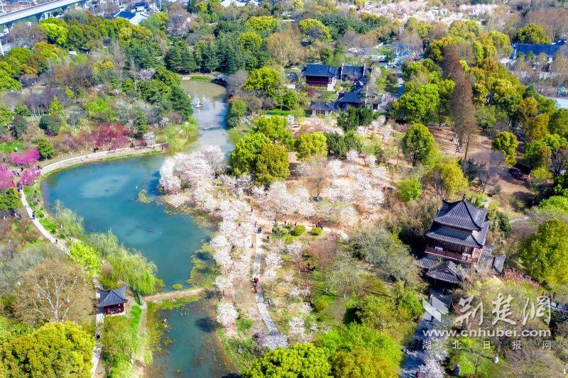 作為武漢“必打卡十大賞櫻點(diǎn)”之一的堤角公園內(nèi)共有櫻花樹1500余株22種,花期從3月一直到4月。通訊員供圖