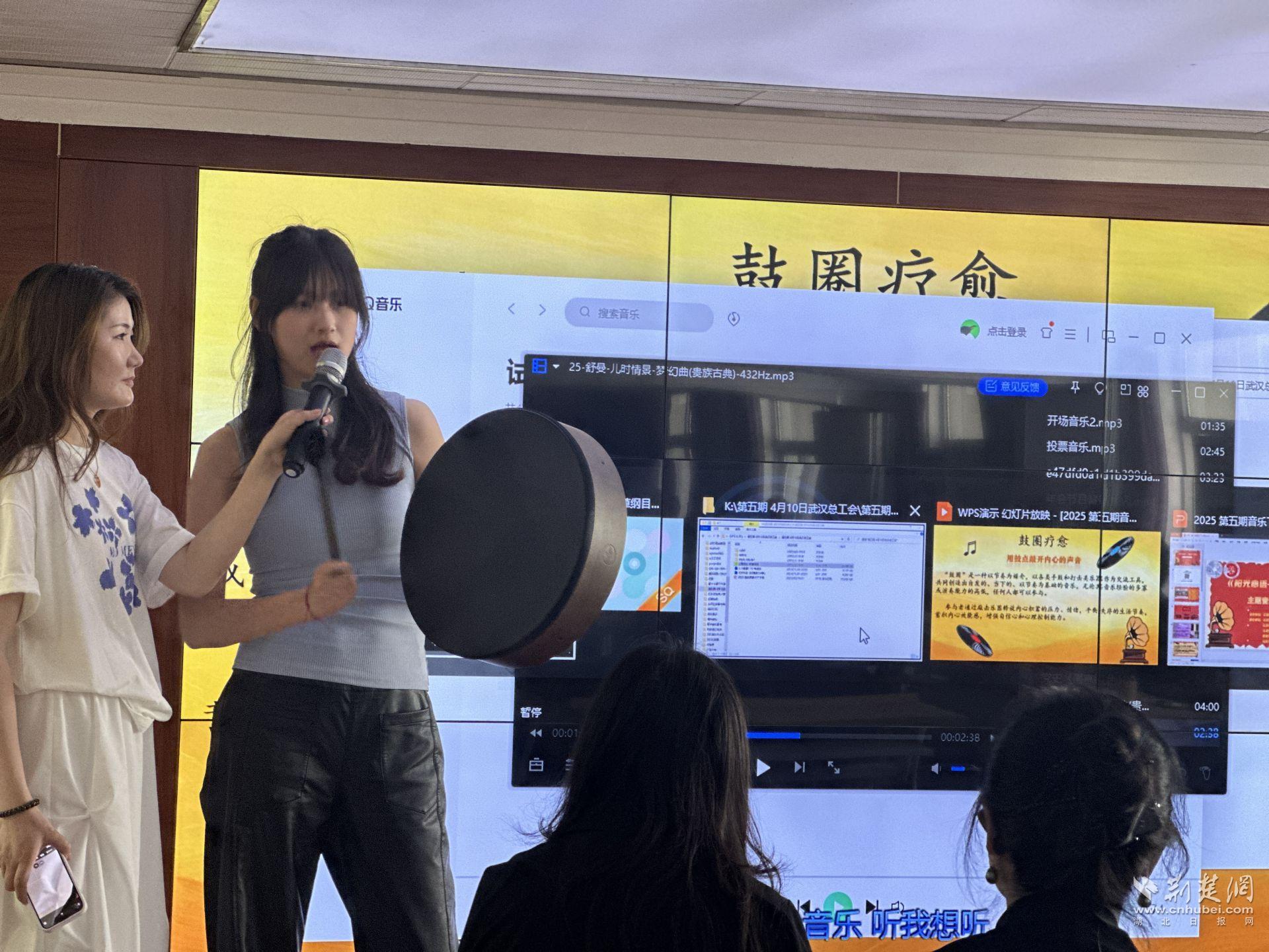 “鼓圈療愈”釋放壓力。記者 何婧攝