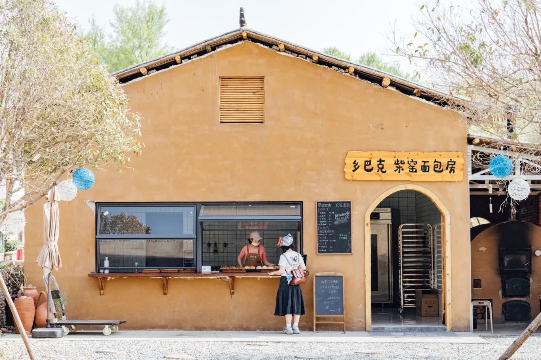 300℃的土窯,柴火噼啪作響。戴著粗布手套的師傅用長柄木鏟送進面團,時間一到,米面包、紅豆包、咖啡包等現(xiàn)烤面包裹著焦香出爐,讓人垂涎欲滴。