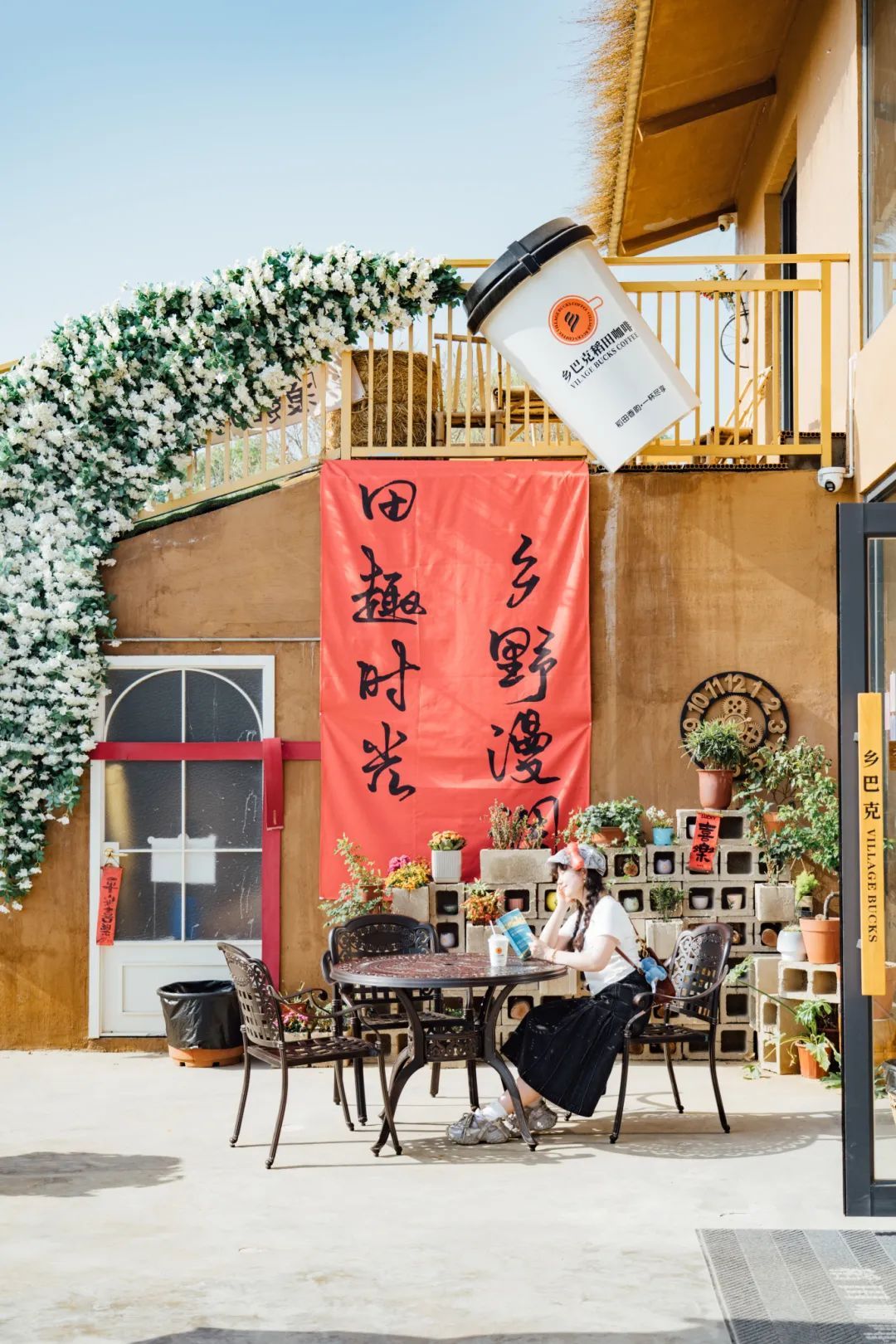 靠窗的吧臺也十分吃香,時不時有年輕的女孩端起咖啡,輪番坐上吧臺椅拍照,背景是屋外的稻田與花海,非?!俺銎?。