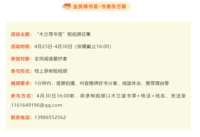 無論您是深耕文字的名家學(xué)者,還是熱愛閱讀的普通市民,只要您愿以真誠分享好書,即可成為"木蘭薦書官"!