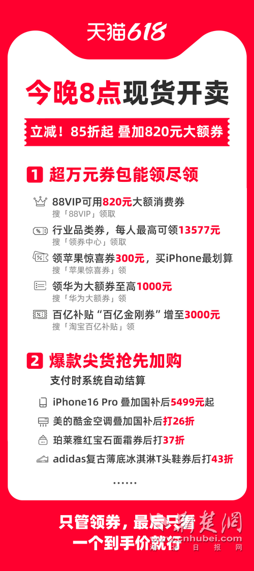 荊楚網(wǎng)(湖北日報網(wǎng))訊(通訊員 朱飛)晚8點,天貓618現(xiàn)貨開賣!