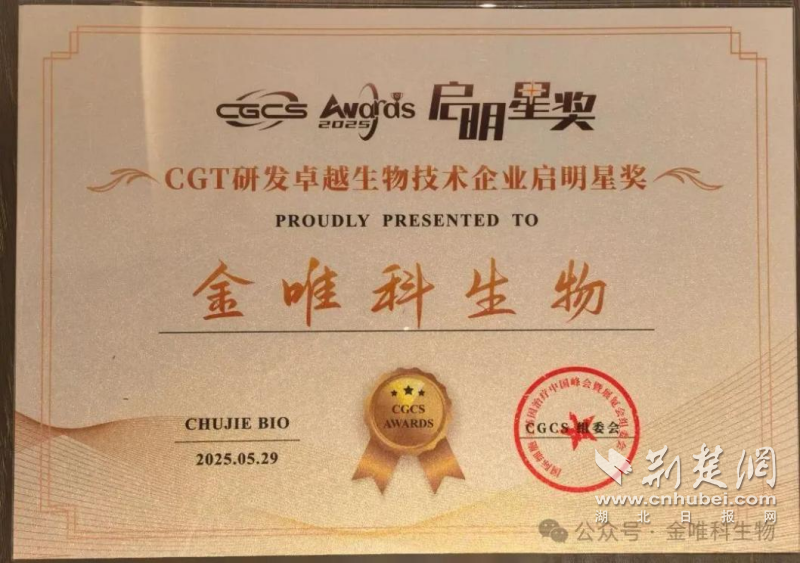 荊楚網(wǎng)(湖北日報(bào)網(wǎng))訊(通訊員 董高宣)近日,第六屆國際細(xì)胞與基因治療中國峰會(huì)(CGCS 2025)在南京揚(yáng)子江國際會(huì)議中心召開,同期舉行了CGCS Awards“啟明星獎(jiǎng)”頒獎(jiǎng)盛典。東湖高新集團(tuán)投資企業(yè)武漢禾元生物科技股份有限公司(以下簡稱“禾元生物”)因優(yōu)質(zhì)的產(chǎn)品與服務(wù)榮獲“CGT領(lǐng)域可靠原料與試劑供應(yīng)啟明星獎(jiǎng)”,另一投資企業(yè)成都金唯科生物科技有限公司(以下簡稱“金唯科”)憑借其在基因治療領(lǐng)域的創(chuàng)新成果榮獲“CGT研發(fā)卓越生物技術(shù)企業(yè)啟明星獎(jiǎng)”。
