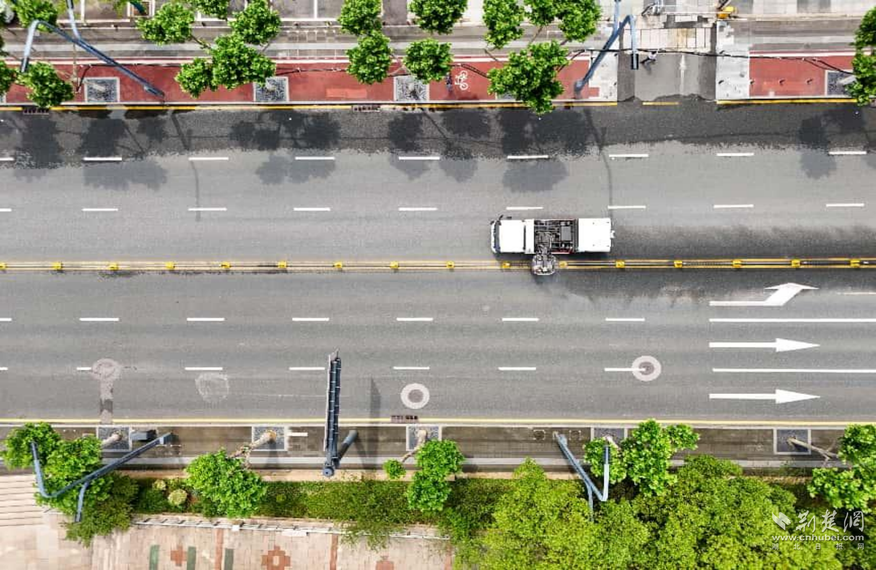 荊楚網(wǎng)(湖北日報網(wǎng))訊(記者 何婧 通訊員 費(fèi)帆 白丹 覃小玲)6月12日,武昌區(qū)臨江大道,記者在長江觀景第一臺旁看到,新能源護(hù)欄清洗車緩緩駛過,隨著機(jī)械刷頭滾動,水霧噴灑而下,不僅護(hù)欄潔白如初,連地面上的黃線也一并沖刷干凈。這樣的場景,如今在臨江大道已經(jīng)成為日常。