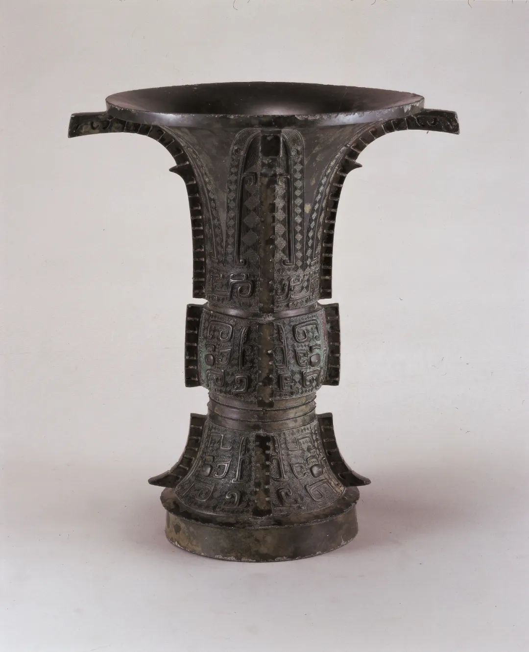此尊高37.1厘米、重6.6千克,形制喇叭口、長(zhǎng)頸、微鼓腹,高圈足、觚形。圈足內(nèi)鑄銘三字“天獸御”,“天獸”是族氏名,“御”是祭祀的意思。