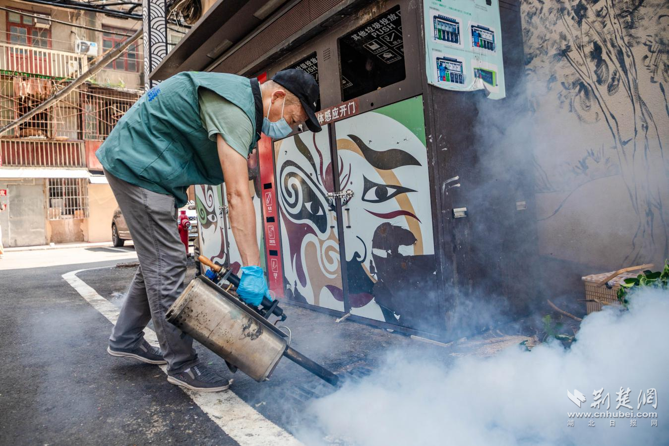 其中江漢區(qū)城管部門聯(lián)合衛(wèi)健部門,組織專業(yè)消殺隊伍,利用熱煙霧機(jī)對轄區(qū)公共區(qū)域開展系統(tǒng)性消殺,同時對窨井投放滅蚊幼蟲緩釋劑,確保消殺工作高效徹底?!安粌H要消殺成蟲,更要斷了蚊蟲的‘后路’”現(xiàn)場一位工作人員解釋道。洪山區(qū)城管部門則采用“清理+消殺”方式,由工作人員身著防護(hù)服,先使用高壓水槍對垃圾清運(yùn)車輛、地埋站設(shè)備進(jìn)行深度沖洗,再對垃圾容器、排水溝、果皮箱等易滋生蚊蟲的部位進(jìn)行細(xì)致噴灑,全方位筑牢夏季防蚊“防護(hù)盾”。