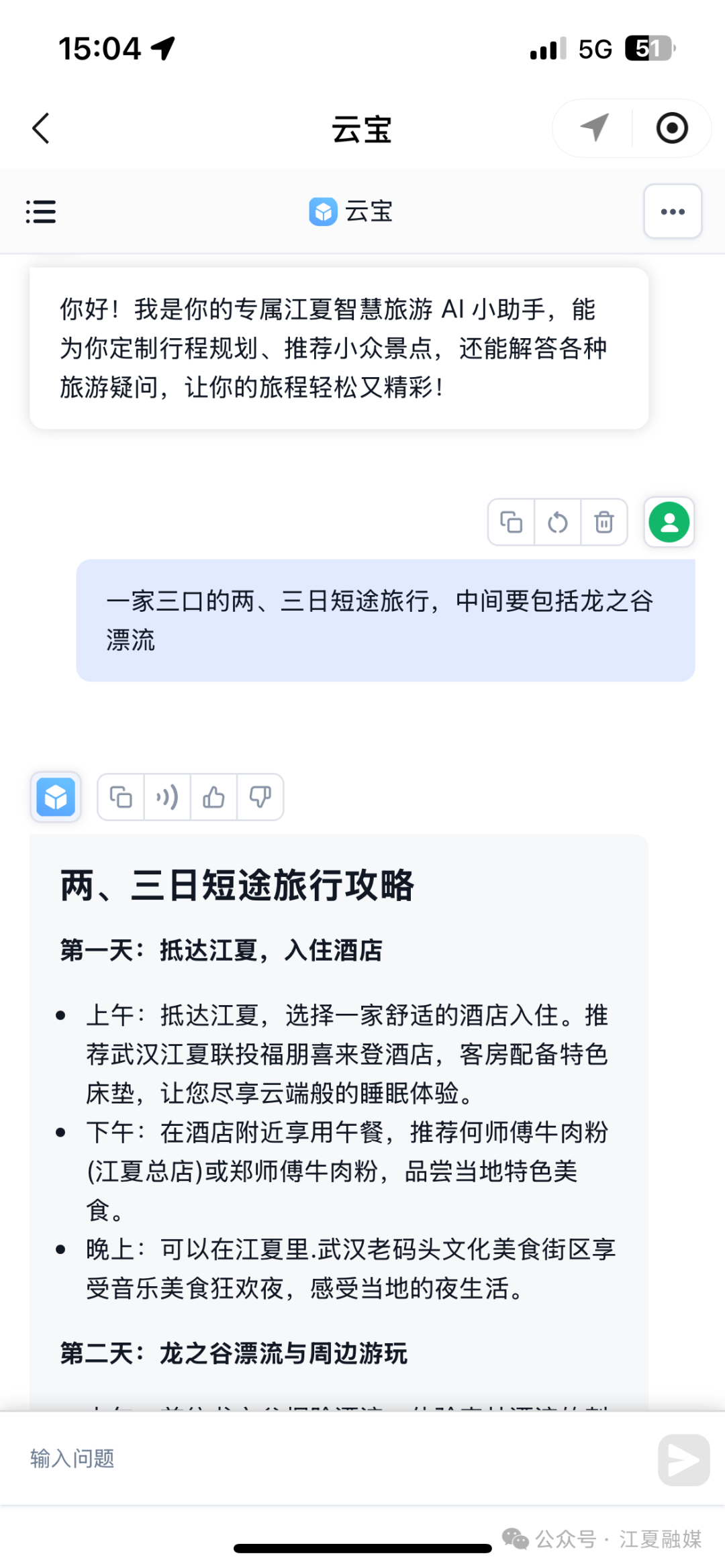 今年5月,基于騰訊元寶大模型,“云游江夏”小程序上線一款獨(dú)家AI——云寶,通過(guò)智能化技術(shù)全面升級(jí)游客體驗(yàn),同時(shí)為景區(qū)管理注入數(shù)字化活力。借助AI智能導(dǎo)游和個(gè)性化推薦功能,游客可享受定制化行程規(guī)劃;同時(shí),AI即時(shí)應(yīng)答服務(wù)則能快速解決如查找景區(qū)信息等實(shí)用問(wèn)題,大幅提升出游便利性。