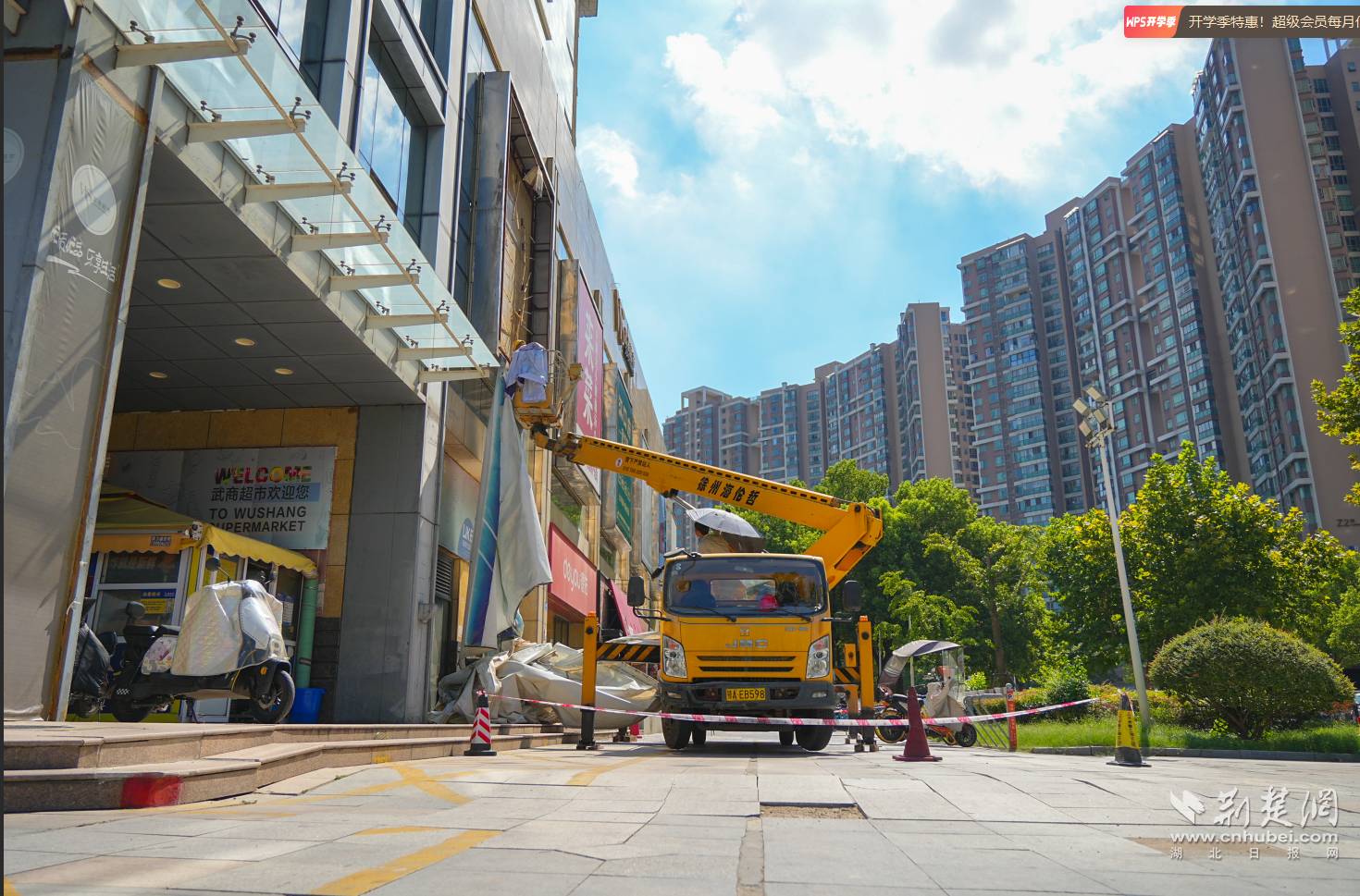 “存在安全隱患的廣告,堅(jiān)決依法拆除,絕不姑息!”8月19日上午,在常青花園中央商業(yè)街武商量販門前,東西湖區(qū)城管執(zhí)法局市政科相關(guān)負(fù)責(zé)人介紹說。在現(xiàn)場(chǎng),施工人員正搭乘高空作業(yè)車,對(duì)武商量販外立面的問題廣告進(jìn)行一一拆除。據(jù)了解,常青花園中央商業(yè)街人流量大、廣告設(shè)置密集,部分廣告牌因長(zhǎng)期風(fēng)吹日曬出現(xiàn)畫面破損等問題,既影響市容環(huán)境,更對(duì)市民安全構(gòu)成潛在威脅。